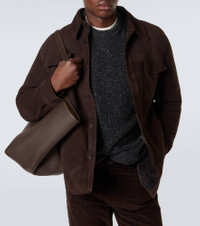 A deep affection for refined and timeless fashion influences The Row's dedication to craftsmanship and quality. The Bento jacket is made from smooth suede with a buttoned front and plush shearling lining for optimal warmth. Product Details - Material: 100% lamb leather (suede) - Care instructions: specialist clean - Made in Italy - Designer color name: Dark Brown - Item color: brown - Lining: 100% shearling - Contains non-textile parts of animal origin - Collar: classic (Straight point) - Pockets: flap chest pockets, side slit pockets - Cuff: buttoned - Closure: buttoned front - Item number: P01085403 Size & Fit - True to size - For a looser fit, we recommend taking one size up - Straight fit - Non-stretchy fabric - Falls below the hip - Height of model is 189cm-74.5" and wears a size UK 40