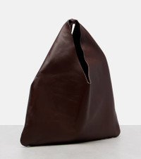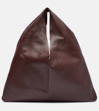 Crafted in Italy from soft leather and lined with suede, the Bindle shoulder bag from The Row features a slouchy silhouette. This design comes with a top handle and open top. Product Details - Material: lamb leather - Lining: suede - Made in Italy - Designer color name: Brown Melange - Item color: brown - Closure: open top - Top handle - Item number: P01048961 Size & Fit - Height 30cm-12" - Width 32cm-12.5" - Length of handles 17cm-6.5"