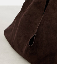 A deep affection for refined and timeless fashion influences The Row's dedication to craftsmanship and quality. The Bindle Small tote bag is crafted from suede and boasts a triangular silhouette. Product Details - Material: leather (suede) - Lining: suede - Made in Italy - Designer color name: Brown Melange - Item color: brown - Includes: dust bag - Item number: P01048959 Size & Fit - Width 31cm-12" - Min. height 17,5cm-7" - Max. height 34cm-13.5"