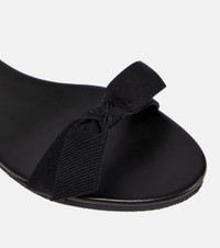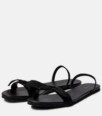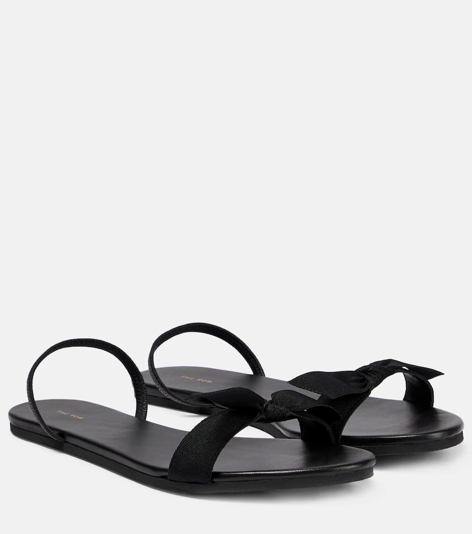 The Row's Bow sandals are named for the silken bow-embellished strap that runs across the almond-shaped toes. Trimmed with leather, the style secures with an elasticated slingback strap. Product Details - Toe shape: round open toe - Upper: fabric - Sole: leather insole, rubber sole - Trim: leather - Comes with a box, Comes with dust bag - Designer color name: Black - Lining: fabric - Made in Italy - Item number: P00783665 Size & Fit - True to size - Slightly narrow - European sizes