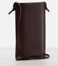 A deep affection for refined and timeless fashion influences The Row's dedication to craftsmanship and quality. Crafted from leather, the Camie pouch with strap is a compact accessory designed for carrying small essentials like your phone or wallet Product Details - Material: lamb leather - Lining: satin - Made in Italy - Designer color name: Brown Melange Ans - Item color: brown - Adjustable shoulder strap - Includes: dust bag - Item number: P01048810 Size & Fit - Height 17,5cm-7" - Width 11,5cm-4.5" - Min. length shoulder strap 105cm-41.5" - Max. length shoulder strap 117cm-46"