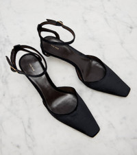 A deep affection for refined and timeless fashion influences The Row's dedication to craftsmanship and quality. The Carla pumps are made in Italy from velvet in a squared-toed silhouette. Product Details - Upper: viscose, silk - Lining: leather - Sole: leather insole and sole - Toe shape: square toe - Made in Italy - Includes: shoe box, dust bag - Designer color name: Black - Item color: black - Closure: buckle-fastening ankle strap - Hardware color: gold - Item number: P01100960 Size & Fit - True to size - European sizes - 4,5cm-2" heel (size EU 38)