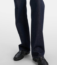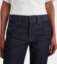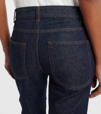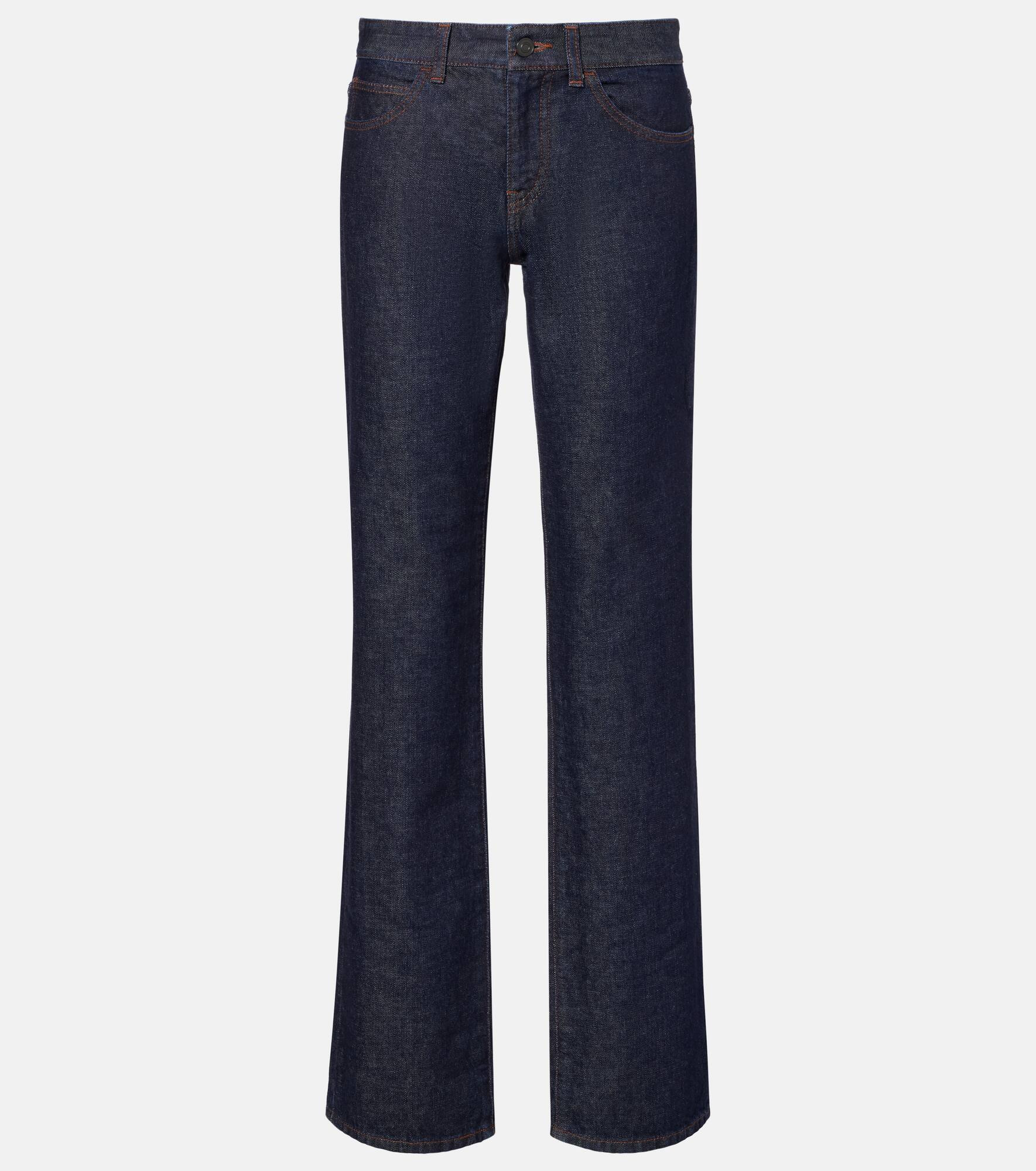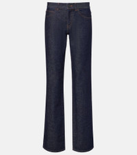 A deep affection for refined and timeless fashion influences The Row's dedication to craftsmanship and quality. The Carlyl jeans are cut from pure cotton denim to a straight-leg silhouette with contrast topstitching. Product Details - Material: 100% cotton - Care instructions: dry clean - Made in Japan - Designer color name: Indigo - Item color: blue - Dye: dark - Closure: zipper fly, button fastening - Pockets: five pockets - Belt loops - Item number: P01076751 Size & Fit - True to size - Non-stretchy fabric - Straight leg - Mid-rise - The model seen in the picture is 178cm-5'10" and wearing a size 26