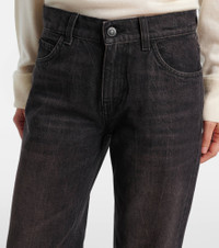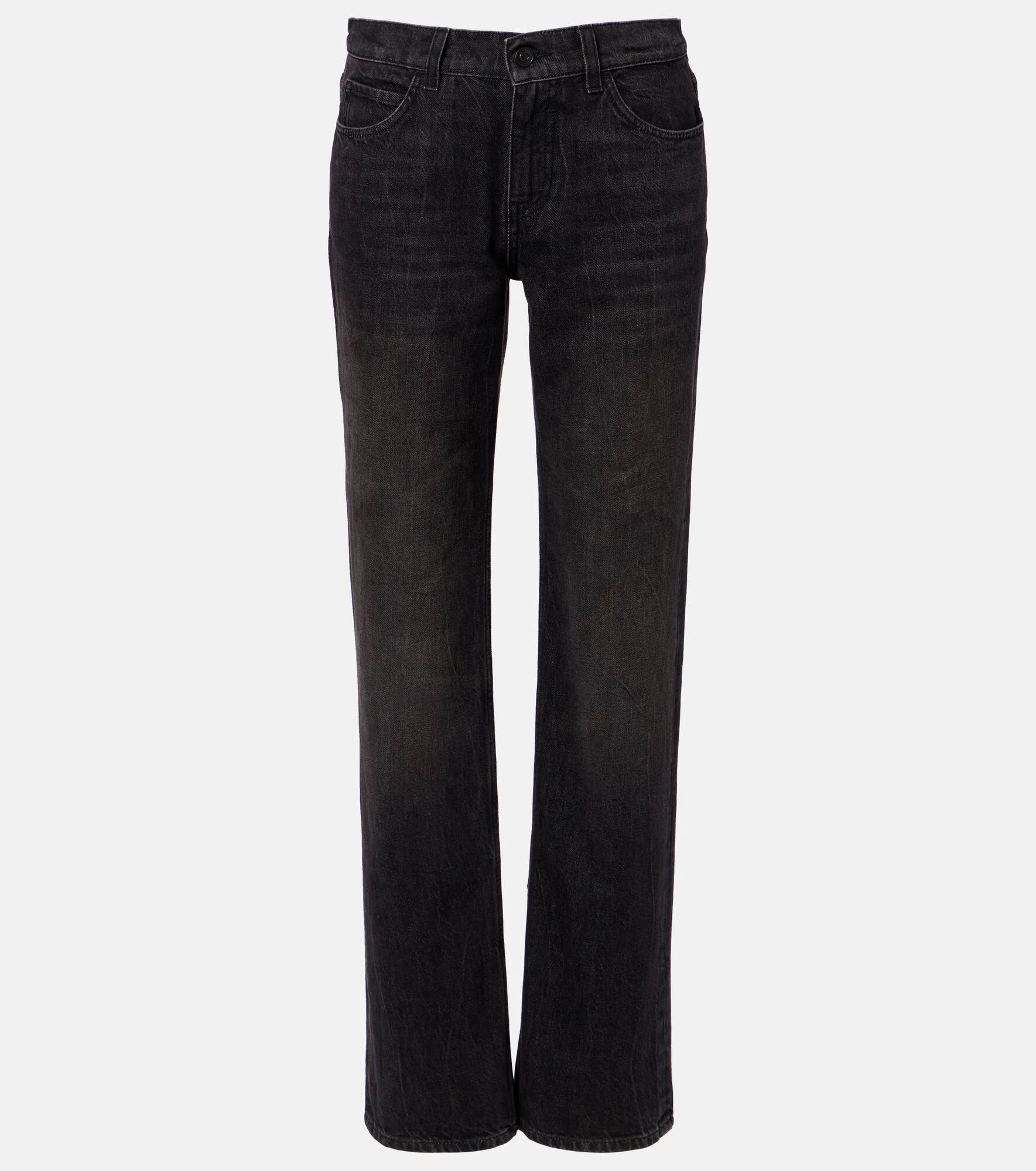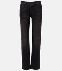 A deep affection for refined and timeless fashion influences The Row's dedication to craftsmanship and quality. Featuring straight legs and a mid-rise waist, the Carlyl jeans are finished with tonal topstitching. Product Details - Material: 100% cotton - Care instructions: machine wash at 30 degrees - Made in Italy - Designer color name: Black - Item color: black - Lining: 65% polyester, 35% cotton - Belt loops - Pockets: five pockets - Closure: zipper fly, button fastening - Item number: P01115464 Size & Fit - True to size - Non-stretchy fabric - Straight leg - Mid-rise - The model seen in the picture is 178cm-5'10" and wearing a size 26