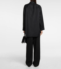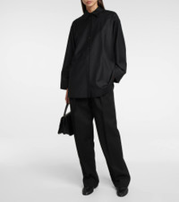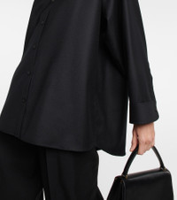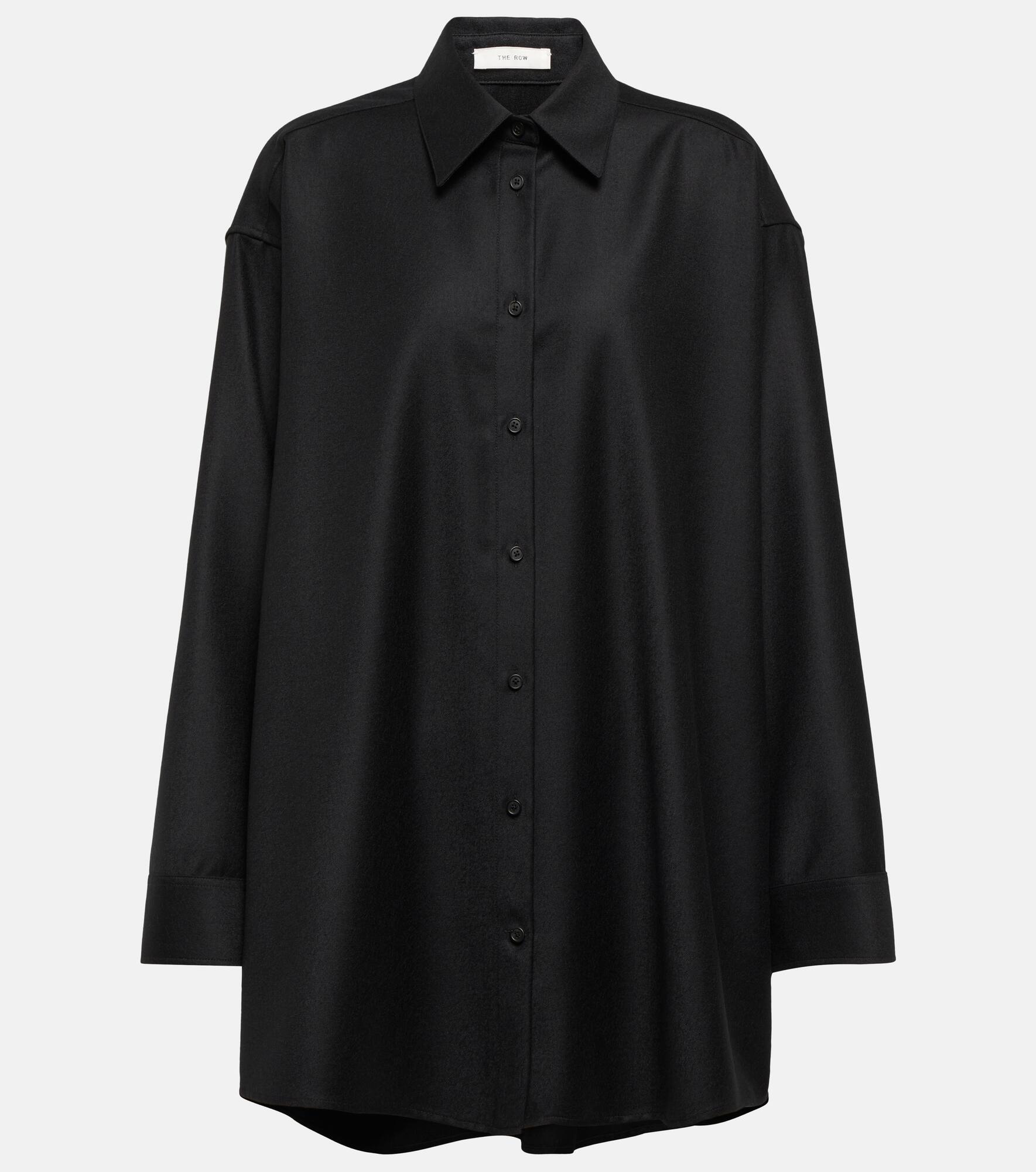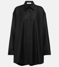 The Row masters the art of elegant simplicity with staple designs like the Caroline shirt. Made from virgin wool, it’s shaped for a relaxed, oversized fit with a point collar and curved hem. Product Details - Made in Italy - Material: 100% virgin wool - Buttoned cuffs - Designer color name: Black - Care instructions: dry clean - Contains non-textile parts of animal origin - Closure: button fastening - Item number: P00741437 Size & Fit - Fits large to size - we recommend trying one size smaller - Dropped shoulders - Oversized - Non-stretchy fabric - Falls below the hip - The model seen in the picture is 178cm-5'10" and wearing a size XS