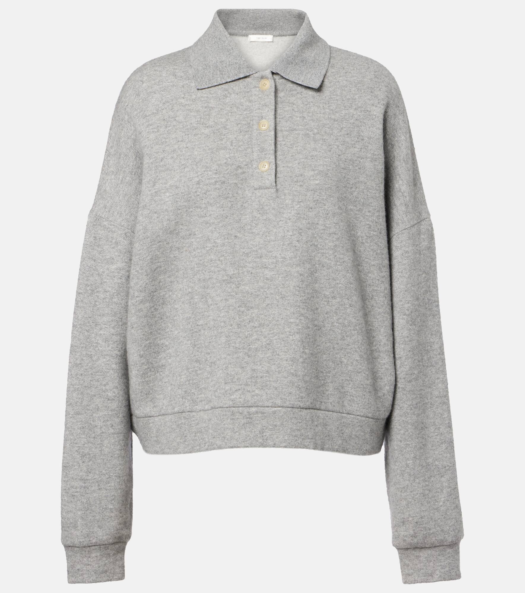 The Corzas cashmere and cotton polo sweater exudes the laidback elegance The Row is known for. The oversized style features drop-shoulders and a partially-buttoned front. Product Details - Material: 69% cashmere, 31% cotton - Care instructions: dry clean - Made in Italy - Designer color name: Grey Melange - Item color: gray - Collar: polo collar - Oversized fit - Closure: partially buttoned front - Cuff: ribbed - Hem: ribbed - Item number: P01076750