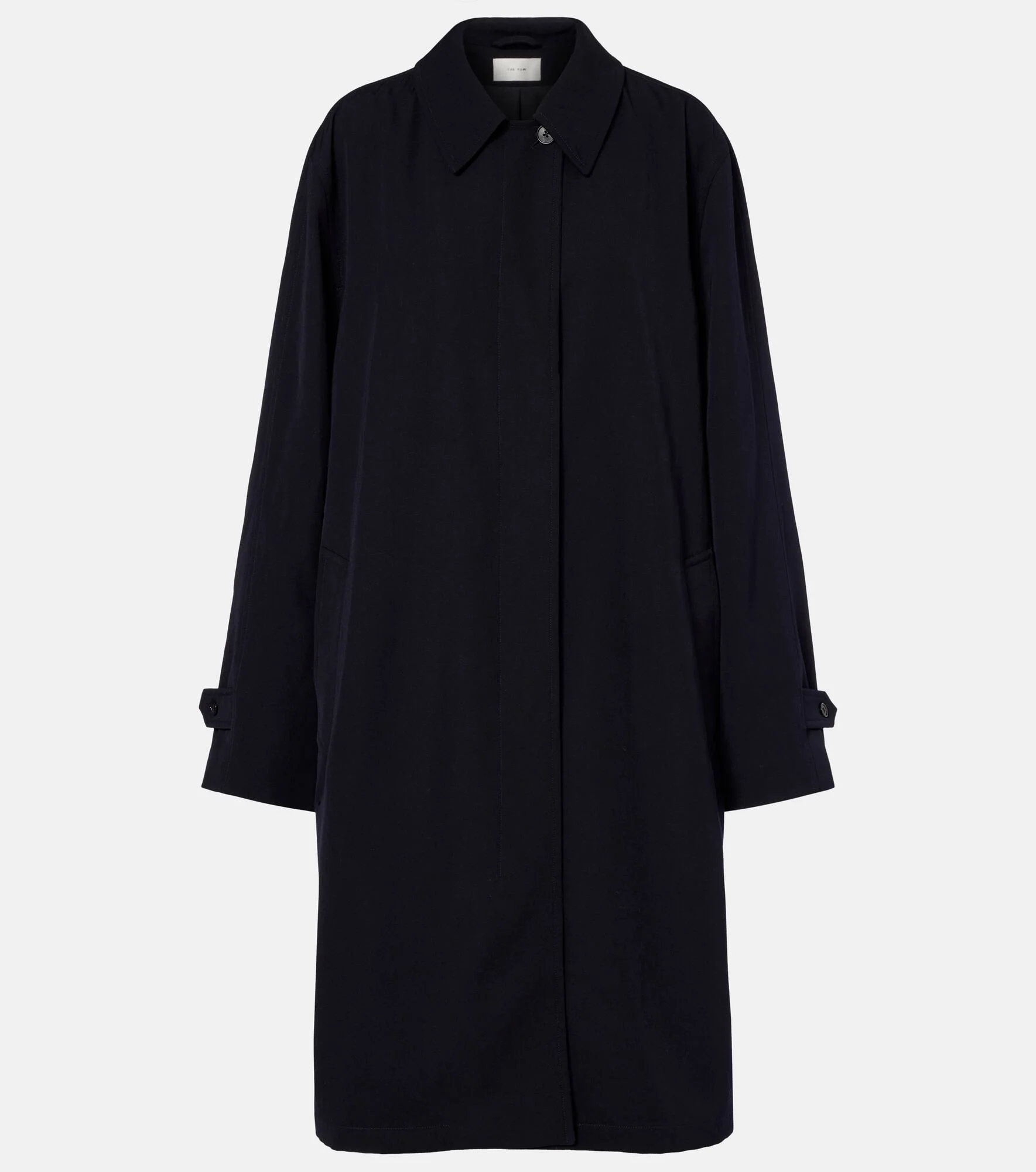 A deep affection for refined and timeless fashion influences The Row's dedication to craftsmanship and quality. Made from pure wool, the Dayton car coat is a classic design with a pointed collar and tonal button fastenings. Product Details - Material: 100% wool - Care instructions: dry clean - Made in Italy - Color: blue - Designer color name: Dark Navy - Lining: 100% silk - Closure: buttoned front - Pockets: welt pockets - Vent: single - Item number: P01149348