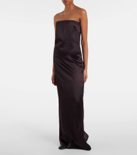 A deep affection for refined and timeless fashion influences The Row's dedication to craftsmanship and quality. The Dolci silk-blend gown has a strapless, flowing design, that is gathered at the back for the perfect fit. Product Details - Material: 66% silk, 34% viscose - Care instructions: dry clean - Handmade in Italy - Designer color name: Dark Brown - Item color: brown - Item number: P01035287 Size & Fit - Fits large to size - we recommend trying one size smaller - Strapless - Internal laced corset for support - Straight fit - Non-stretchy fabric - slit length 44cm-17.5" - The model seen in the picture is 178cm-5'10" and wearing a size US 2