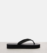 A deep affection for refined and timeless fashion influences The Row's dedication to craftsmanship and quality. The Dune thong sandals are complete with grosgrain uppers, textured footbeds, platforms, and lightweight rubber soles. Product Details - Upper: fabric - Lining: fabric - Sole: rubber insole and sole - Toe shape: round open toe - Made in Italy - Includes: shoe box, dust bag - Designer color name: Black - Item color: black - Item number: P00994382 Size & Fit - True to size - Half sizes please take the next size down - European sizes - 3cm-1" platform (size EU 38)