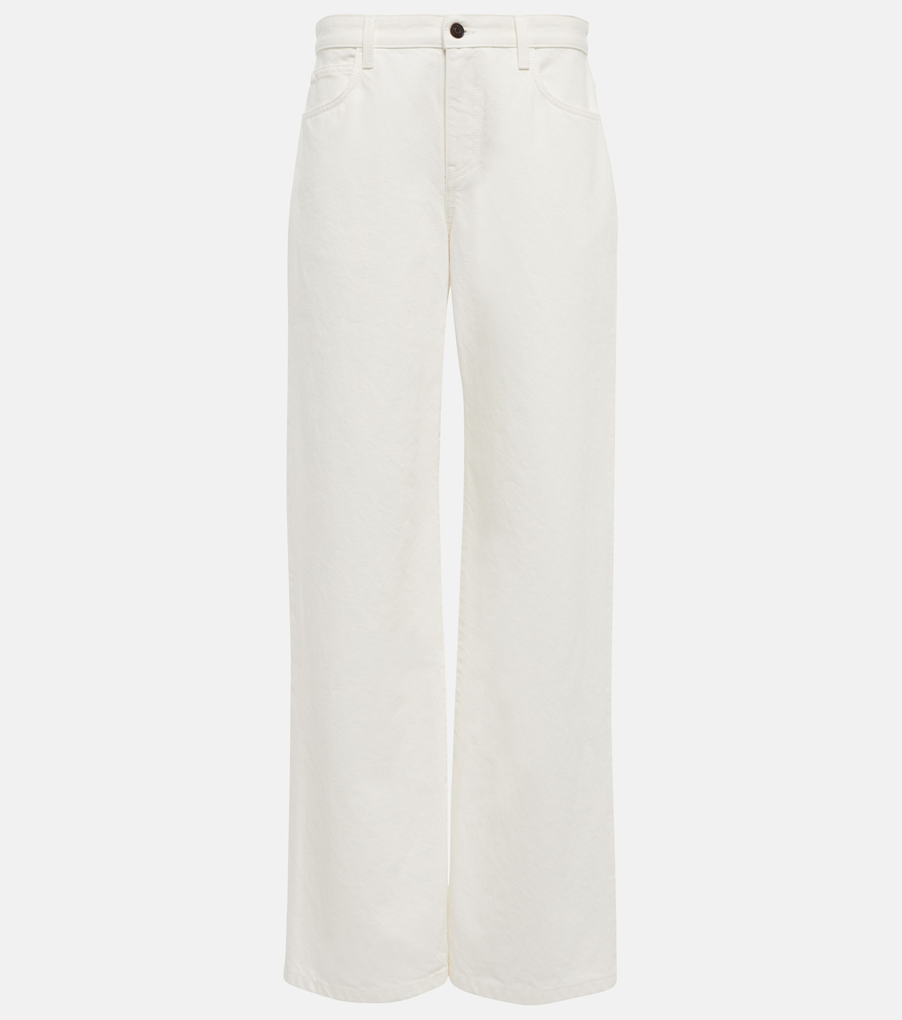 Elevating a throwback denim style, the Eglitta jeans from The Row are designed with a mid rise. In a five-pocket design, the white jeans have a slightly faded finish and wide legs. Product Details - Pockets: five pockets - Made in Italy - Care instructions: machine wash at 30 degrees - Designer color name: White - Lining: 35% cotton, 65% polyester - Closure: zipper fly, button fastening - Material: 100% cotton - Item number: P00741443 Size & Fit - Fits large to size - we recommend trying one size smaller - Mid-weight material - Non-stretchy fabric - Wide-leg - Mid-rise - Inseam length approx: 81cm-32" - The model seen in the picture is 178cm-5'10" and wearing a size US 2
