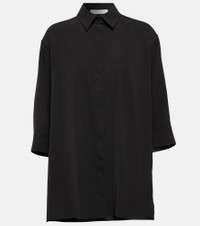 The Row masters the art of elegant simplicity with the Elada shirt. Shaped for a relaxed fit, it’s made from a wool-blend with a concealed button placket, cropped sleeves, and side-slits at the hem. Product Details - Made in Italy - Closure: concealed buttoned front - Care instructions: dry clean - Designer color name: Black - Buttoned cuffs - Material: 60% viscose, 40% wool - Contains non-textile parts of animal origin - Item number: P00782202 Size & Fit - True to size - Dropped shoulders - Designed for a loose fit - Non-stretchy fabric - Falls below the hip - The model seen in the picture is 178cm-5'10" and wearing a size XS