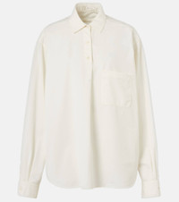 A deep affection for refined and timeless fashion influences The Row's dedication to craftsmanship and quality. Understated and sophisticated, the Erika shirt has a relaxed fit and is finished with a subtle front pocket. Product Details - Material: 95% cotton, 5% cashmere - Care instructions: do not wash - Made in Italy - Designer color name: White - Item color: white - Item number: P01035293 Size & Fit - True to size - Dropped shoulders - Designed for a loose fit - Non-stretchy fabric - Falls below the hip - Height of model is 175cm-69" and wears a size US 4