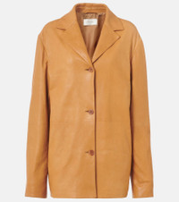 A deep affection for refined and timeless fashion influences The Row's dedication to craftsmanship and quality. The Fabian leather jacket has clean lines and classic notched lapels. Product Details - Material: 100% lamb leather - Care instructions: specialist clean - Made in Italy - Designer color name: Caramel - Item color: brown - Closure: buttoned front - Item number: P01035273 Size & Fit - True to size - Dropped shoulders - Designed for a loose fit - Non-stretchy fabric - Falls below the hip - Height of model is 175cm-69" and wears a size US 4