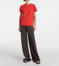 A deep affection for refined and timeless fashion influences The Row's dedication to craftsmanship and quality. This flair informs the construction of the Florie T-shirt, cut from brushed cotton jersey to a slim fit, and finished with signature stitch detailing on the back. Product Details - Material: 100% cotton - Care instructions: machine wash at 30 degrees - Made in Italy - Designer color name: Tomato Red - Item number: P01031369 Size & Fit - True to size - Straight fit - Slightly stretchy fabric - Falls to the hip - The model seen in the picture is 178cm-5'10" and wearing a size XS
