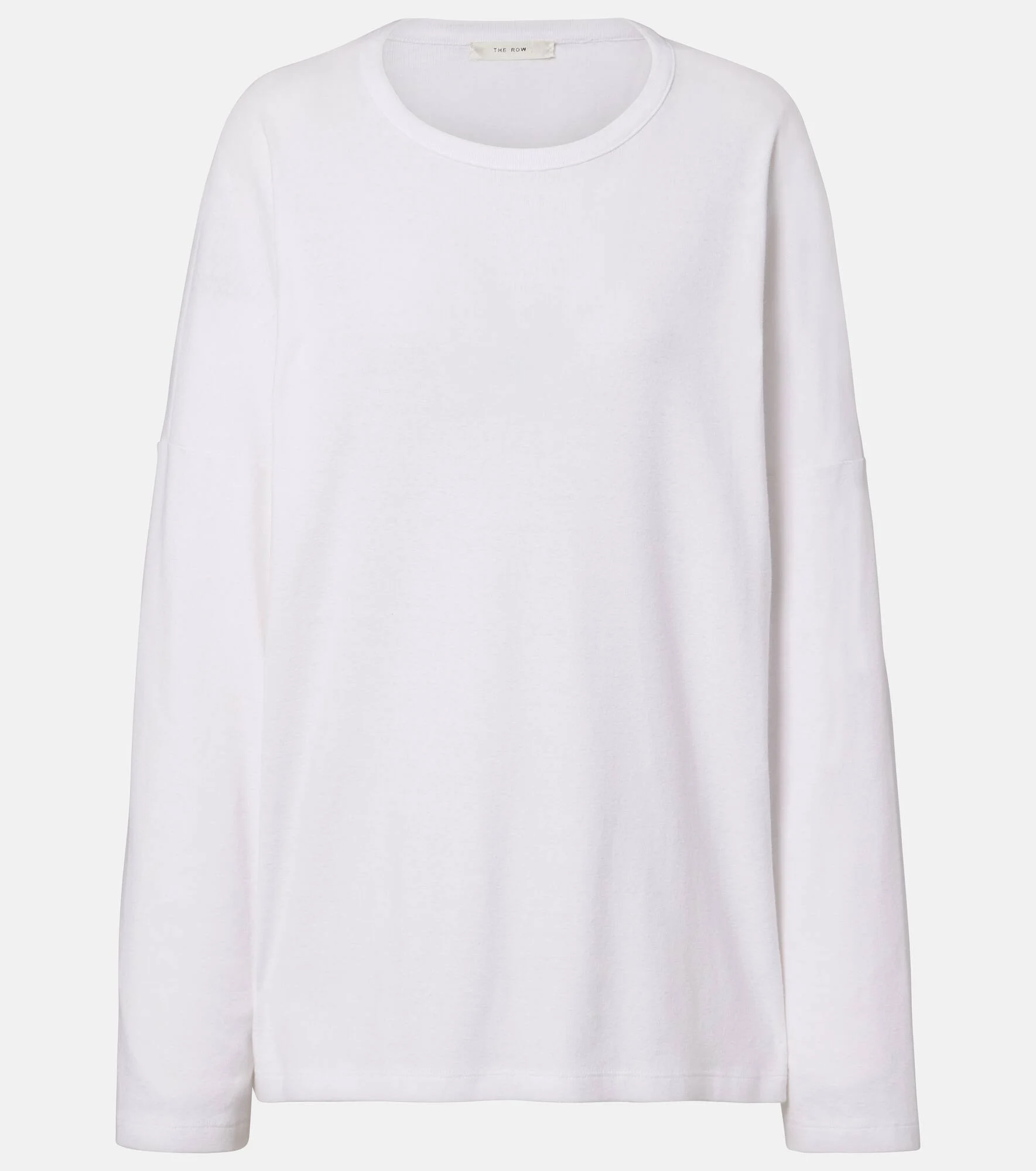 A deep affection for refined and timeless fashion influences The Row's dedication to craftsmanship and quality. Crafted from pure, lightweight cotton, the Floris T-shirt features a long-sleeved style with a comfortable, relaxed silhouette. Product Details - Material: 100% cotton - Care instructions: dry clean - Made in Italy - Color: white - Designer color name: White - Item number: P01149293 Size & Fit - True to size - Dropped shoulders - Designed for a loose fit - Stretchy fabric - Falls below the hip - The model seen in the picture is 178cm-5'10" and wearing a size XS