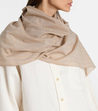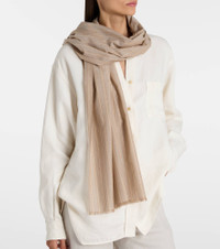 A deep affection for refined and timeless fashion influences The Row's dedication to craftsmanship and quality. Made from lightweight cotton, the Guel scarf is complete with classic stripes and raw, frayed edges. Product Details - Material: 100% cotton - Care instructions: dry clean - Made in Italy - Designer color name: Beige Melange - Item color: beige - Item number: P01048831 Size & Fit - Length 184cm-72.5" - Width 50,5cm-20"
