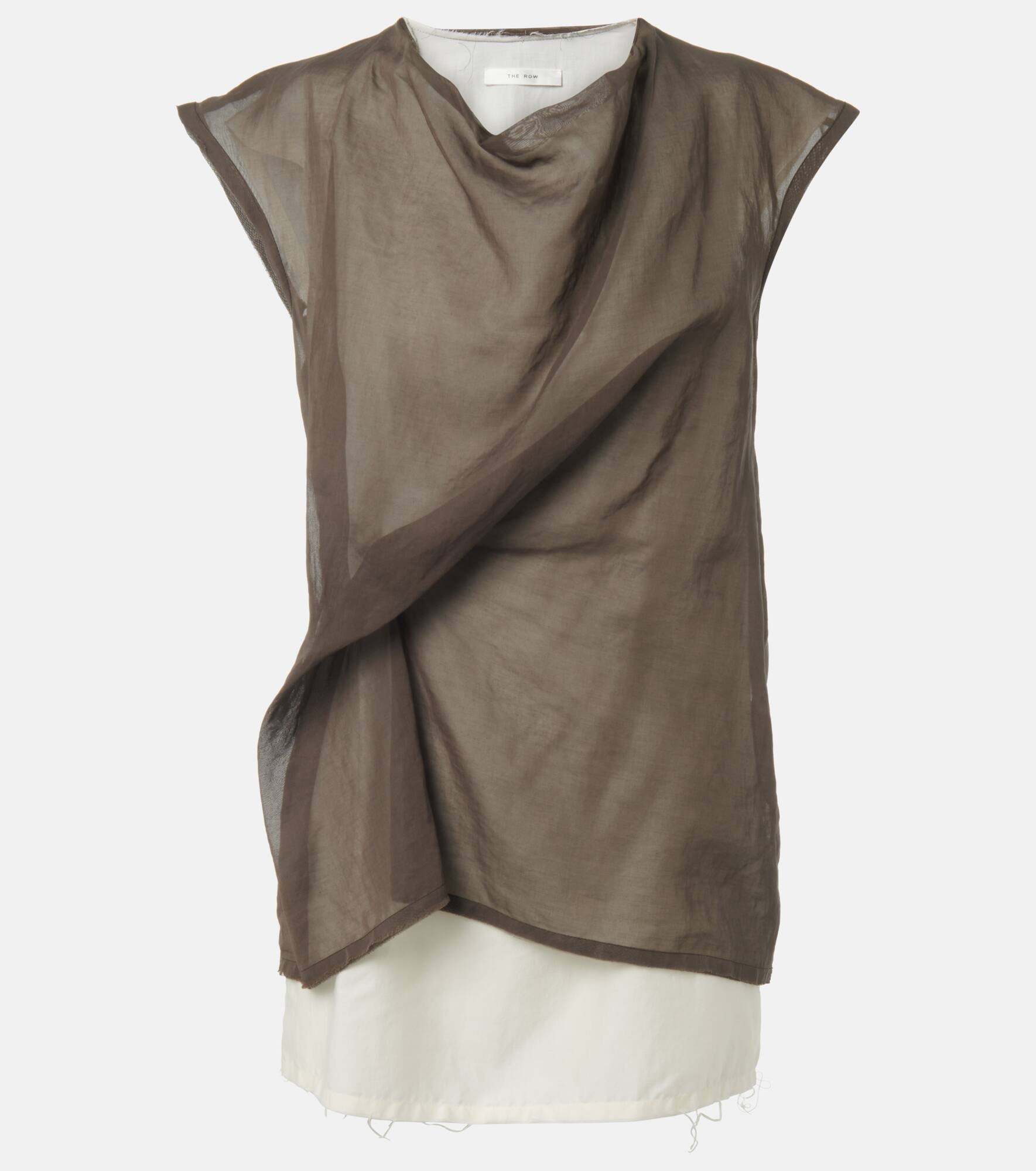 A deep affection for refined and timeless fashion influences The Row's dedication to craftsmanship and quality. The Inawa top is cut from cotton to a draped silhouette, and features a raw neckline and elongated inner layer for a deconstructed finish. Product Details - Material: 100% cotton - Care instructions: do not wash - Made in Italy - Designer color name: Brown - Item color: brown - Item number: P01035296 Size & Fit - True to size - Cinched waist - Falls below the hip - Height of model is 175cm-69" and wears a size US 4