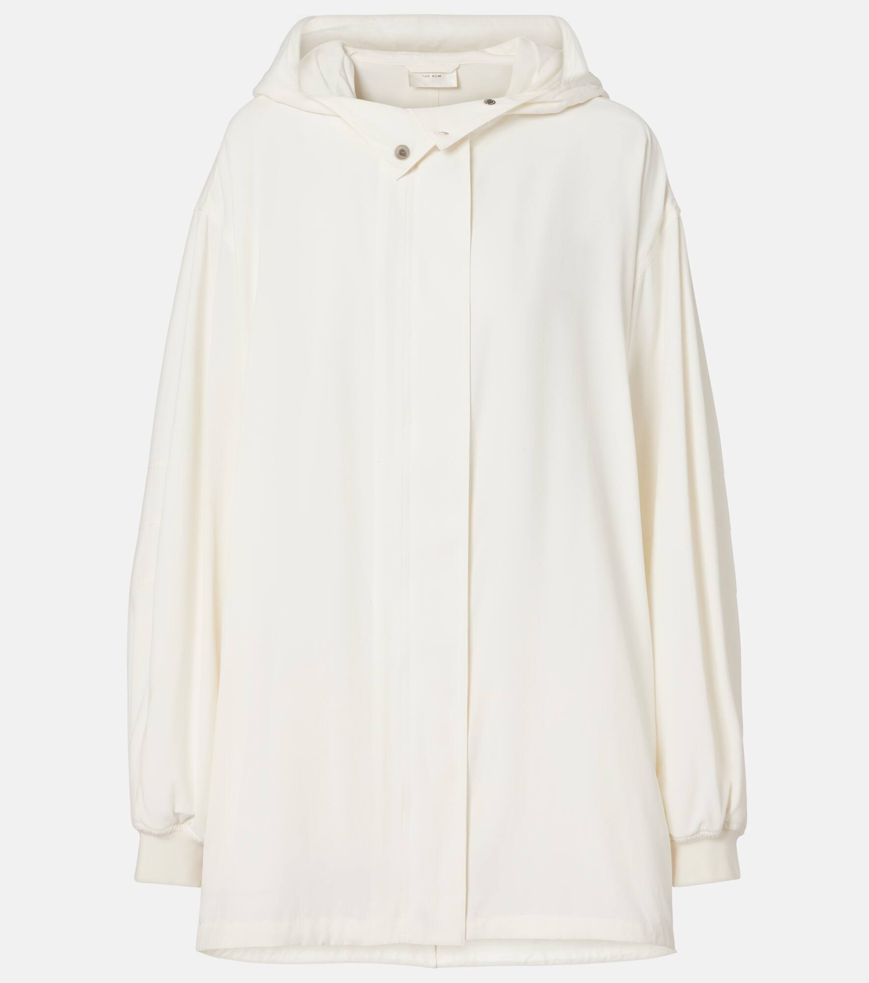 A deep affection for refined and timeless fashion influences The Row's dedication to craftsmanship and quality. The Kemetina raincoat is made from silk and has a hidden front placket. Product Details - Material: 100% silk - Care instructions: specialist clean - Made in Italy - Designer color name: Off White - Item color: white - Item number: P01035312 Size & Fit - True to size - Designed for an extremely oversized fit - Dropped shoulders - Non-stretchy fabric - Falls below the hip - Height of model is 173cm-68" and wears a size US 4