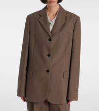 A deep affection for refined and timeless fashion influences The Row's dedication to craftsmanship and quality. The Kimiko blazer is crafted from silk and wool and has a slightly fitted silhouette. Product Details - Material: 76% wool, 24% silk - Care instructions: dry clean - Made in Italy - Designer color name: Flax Brown - Item color: brown - Item number: P01035314 Size & Fit - True to size - Shoulder pad inserts - Designed for a loose fit - Non-stretchy fabric - Falls below the hip - slit length 20cm-8" - The model seen in the picture is 178cm-5'10" and wearing a size US 4