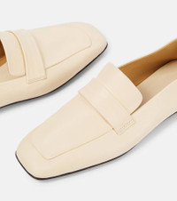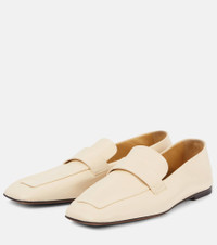 A deep affection for refined and timeless fashion influences The Row's dedication to craftsmanship and quality. Make every step count with a chick pair like these loafers crafted from grained leather to a modern square-toe silhouette. Product Details - Upper: leather - Lining: leather - Sole: leather insole and sole - Toe shape: square toe - Made in Italy - Includes: shoe box - Designer color name: Toile - Item color: white - Item number: P01049295 Size & Fit - True to size - Best fit for narrow feet - European sizes
