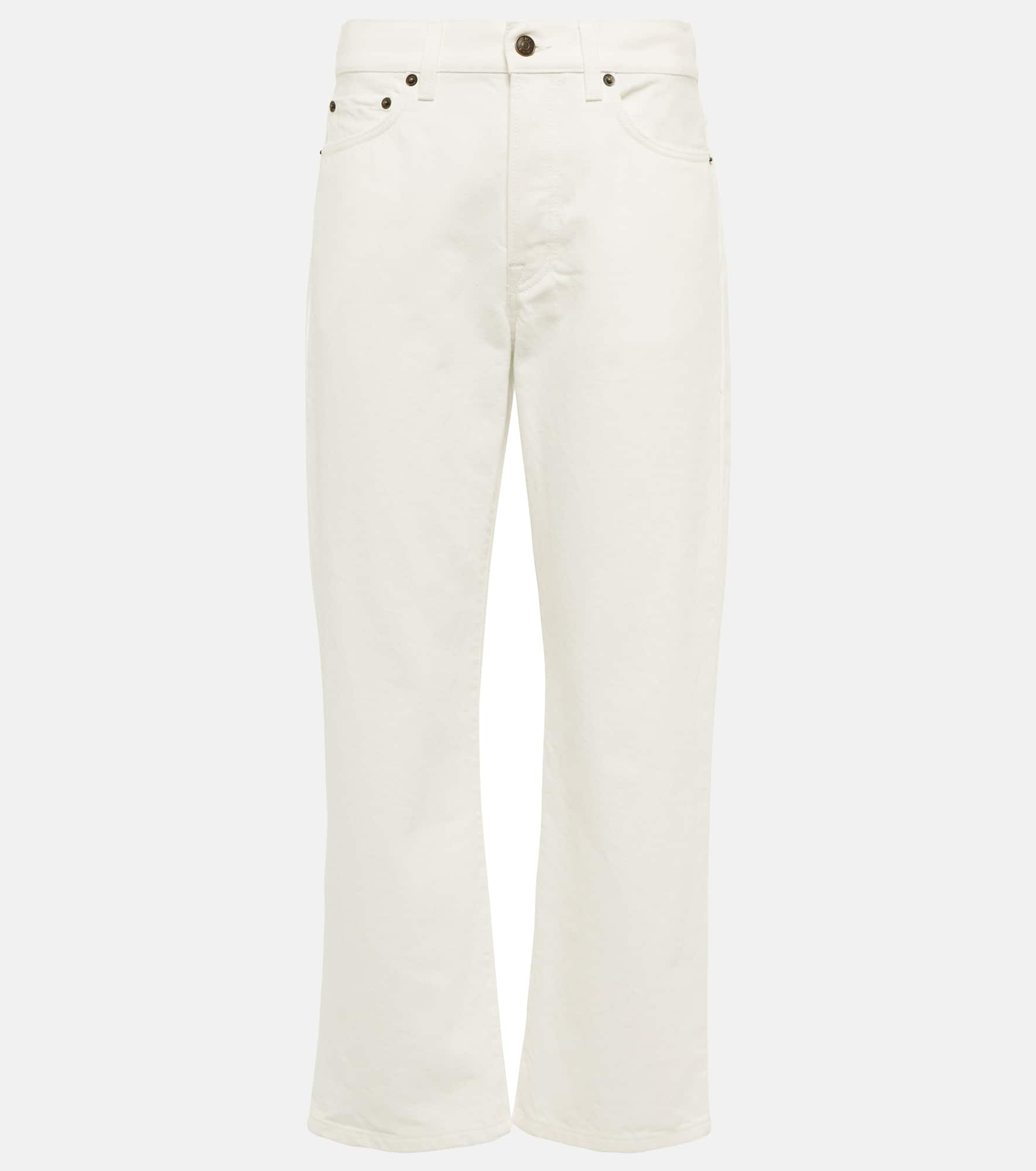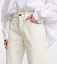 The Lesley jeans from The Row are a versatile wardrobe workhorse. Made in Italy from mid-weight, white denim, they have a mid-rise silhouette with slightly cropped straight legs that flare lightly towards the hems. Product Details - Pocket lining: 35% cotton, 65% polyester - Pockets: five pockets - Belt loops - Designer color name: White - Made in Italy - Closure: buttoned front - Care instructions: dry clean - Material: 100% cotton - Item number: P00698164 Size & Fit - Fits large to size - we recommend trying one size smaller - Mid-weight material - Non-stretchy fabric - Straight leg - Mid-rise - Inseam length approx: 67cm-26.5" - The model seen in the picture is 178cm-5'10" and wearing a size US 2