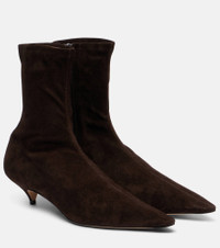 The Liisa ankle boots from The Row distill expert craftsmanship into a sleek, minimalist silhouette. Elegant, understated, and undeniably confident, the pair is made from suede and defined by pointed toes and subtle 40mm kitten heels. Product Details - Upper: leather (suede) - Lining: fabric - Sole: leather insole, leather and rubber sole - Toe shape: pointed toe - Made in Italy - Includes: shoe box - Designer color name: Lacquer Brown - Item color: brown - Closure: zipped side - Item number: P01100965 Size & Fit - True to size - European sizes - 4cm-1.5" heel (size EU 38)