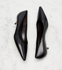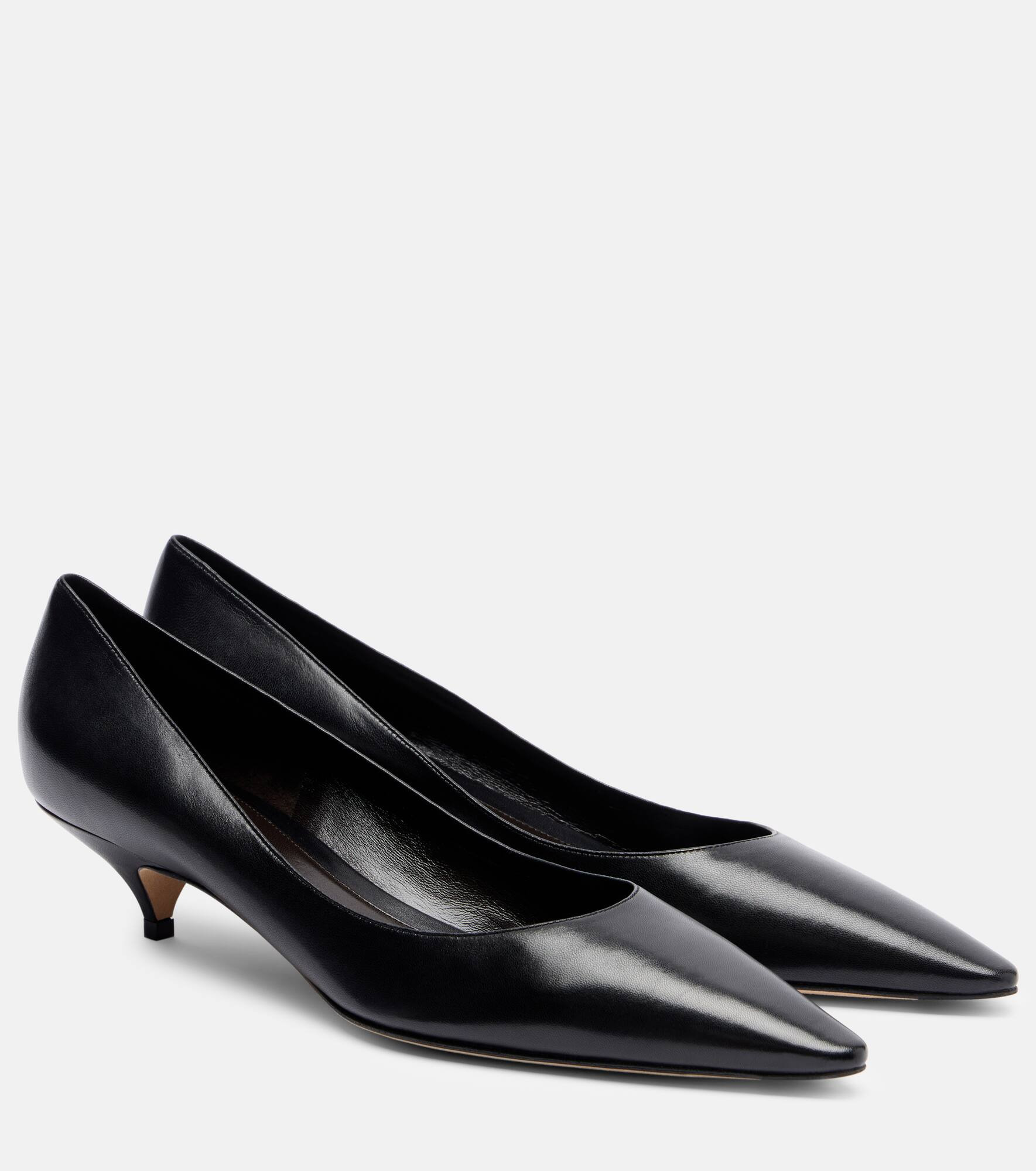 A deep affection for refined and timeless fashion influences The Row's dedication to craftsmanship and quality. Made from polished leather, the Liisa pumps are a minimalist design with sharp pointed toes and slim kitten heels. Product Details - Upper: leather - Lining: leather - Sole: leather insole, leather and rubber sole - Toe shape: pointed toe - Made in Italy - Includes: shoe box - Designer color name: Black - Item color: black - Item number: P01100952 Size & Fit - Fits slightly large to size - we recommend trying a half size smaller - European sizes - 4cm-1.5" heel (size EU 38)