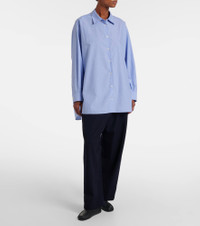 This Luka classic button-up shirt by The Row is crafted from cotton poplin with a fine striped pattern. The style is designed in a relaxed silhouette, with a back yoke and slightly curved hem. Product Details - Material: 100% cotton - Care instructions: dry clean - Made in Italy - Designer color name: Blue W/ White - Item color: blue - Closure: buttoned front - Collar: classic (Straight point) - Cuff: buttoned - Item number: P01115297 Size & Fit - True to size - Dropped shoulders - Oversized - Non-stretchy fabric - Falls below the hip - Height of model is 180cm-71" and wears a size US 4