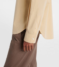 Refined tailoring is at the heart of The Row’s identity – the brand was named after Savile Row, London’s bespoke tailoring district. The Margan shirt is a classic design cut from cotton poplin and finished with a concealed button placket. Product Details - Material: 100% cotton - Care instructions: dry clean - Made in Italy - Designer color name: Sand - Item color: beige - Contains non-textile parts of animal origin - Closure: concealed button placket - Collar: classic (Straight point) - Cuff: buttoned - Hem: rounded - Item number: P01076733 Size & Fit - True to size - Dropped shoulders - Designed for a loose fit - Non-stretchy fabric - Falls below the hip - The model seen in the picture is 178cm-5'10" and wearing a size US 4