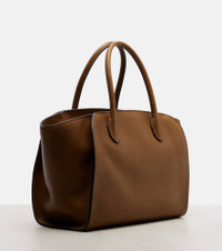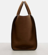 A deep affection for refined and timeless fashion influences The Row's dedication to craftsmanship and quality. The Marlo 12 tote bag is crafted from supple leather and features a spacious, softly structured silhouette with gusseted side panels and tubular handles. Product Details - Material: calf leather - Lining: fabric - Made in France - Color: brown - Designer color name: Muschio Ans - Item color: brown - Top handles - Internal details: internal zipped and slot pockets - Closure: zipped top - Includes: dust bag - Protective leather bottom - Item number: P01088327 Size & Fit - Height 22cm-8.5" - Width 39cm-15.5" - Depth 13cm-5" - Length of handles 39cm-15.5"