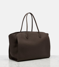 A deep affection for refined and timeless fashion influences The Row's dedication to craftsmanship and quality. The Marlo 17 tote bag is crafted from supple leather and features a spacious, softly structured silhouette with gusseted side panels and tubular handles. Product Details - Material: calf leather - Lining: cotton - Made in France - Designer color name: Deep Brown Ans - Item color: brown - Top handles - Internal details: internal slot pockets, internal zipped pocket - Closure: zipped top - Includes: dust bag - Item number: P01088330 Size & Fit - Height 31cm-12" - Width 52cm-20.5" - Depth 19cm-7.5" - Length of handles 57cm-22.5"