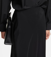 The Row's Medela skirt is made from pure silk satin that ensures a fluid drape. This timeless black design has an elasticated waistband and falls below the knee. Product Details - Lining: fully lined - Made in Italy - Closure: zipped side - Designer color name: Black - Elasticated waistband - Material: 100% silk - Care instructions: dry clean - Item number: P00741411 Size & Fit - True to size - Lightweight material - High-waisted - The model seen in the picture is 178cm-5'10" and wearing a size XS