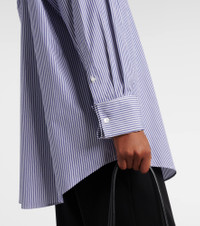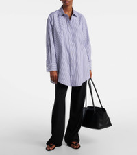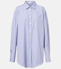 Refined tailoring is at the heart of The Row’s identity – the brand was named after Savile Row, London’s bespoke tailoring district. The Ment shirt is a classic design cut from cotton poplin and printed with a Bengal stripe pattern. Product Details - Material: 100% cotton - Care instructions: hand wash - Made in Italy - Designer color name: White/Blue - Item color: white, blue - Contains non-textile parts of animal origin - Collar: classic (Straight point) - Pockets: angled chest pocket - Closure: buttoned front - Cuff: one button - Item number: P01076678 Size & Fit - True to size - Dropped shoulders - Designed for a loose fit - Non-stretchy fabric - Falls below the hip - The model seen in the picture is 178cm-5'10" and wearing a size US 4