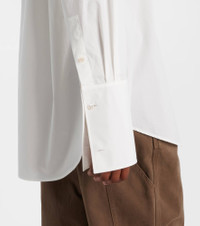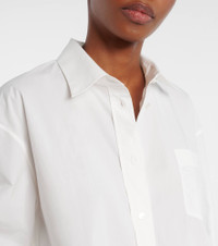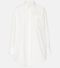 Refined tailoring is at the heart of The Row’s identity – the brand was named after Savile Row, London’s bespoke tailoring district. The Ment shirt is a classic design cut from cotton poplin and finished with elongated cuffs. Product Details - Material: 100% cotton - Care instructions: dry clean - Made in Italy - Designer color name: White - Item color: white - Contains non-textile parts of animal origin - Collar: classic (Straight point) - Closure: buttoned placket - Pockets: angled chest pocket - Cuff: buttoned - Item number: P01076677 Size & Fit - True to size - Dropped shoulders - Oversized - Non-stretchy fabric - Falls below the hip - Height of model is 180cm-71" and wears a size US 4
