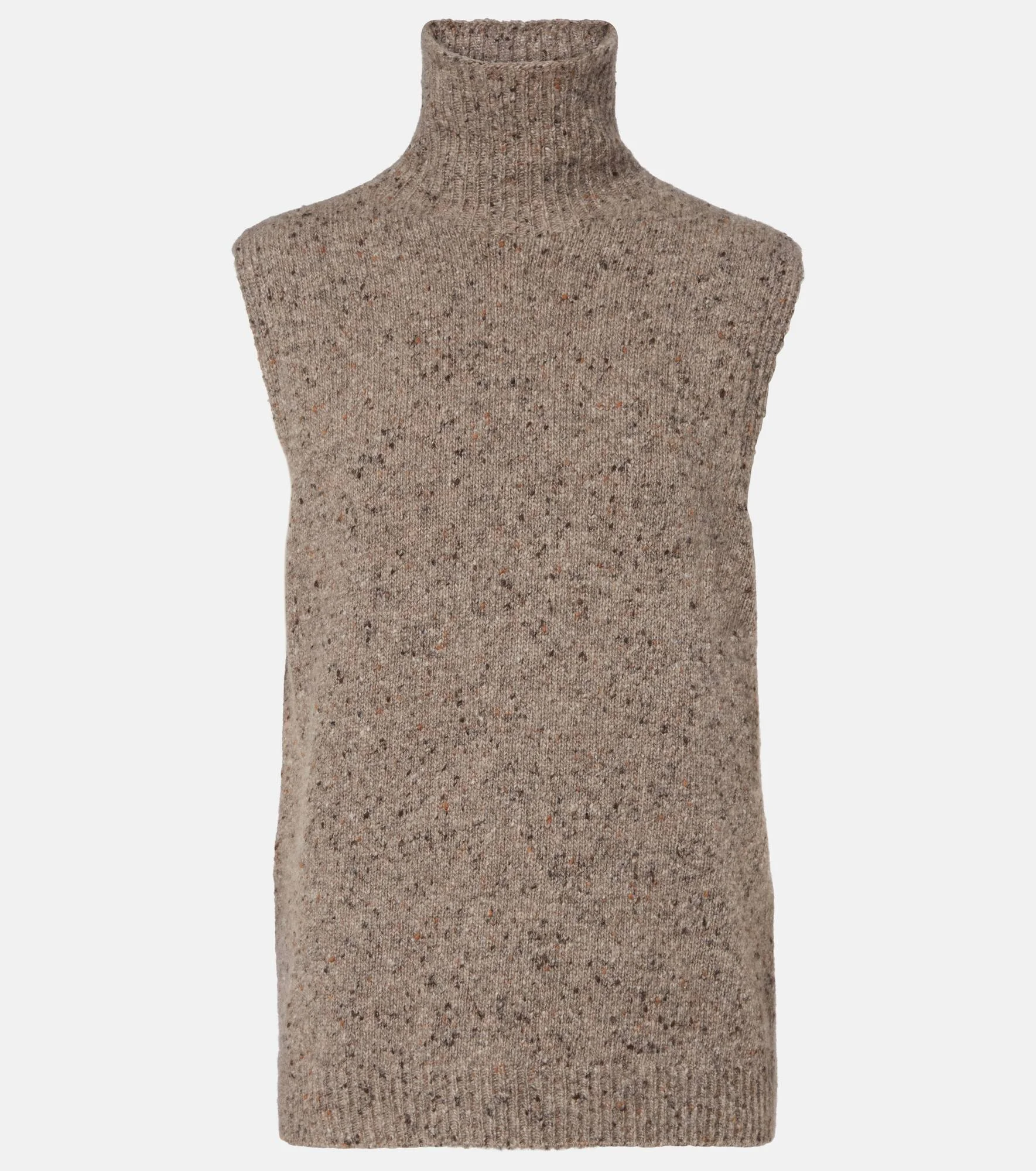 A deep affection for refined and timeless fashion influences The Row's dedication to craftsmanship and quality. Crafted in Italy from soft melange cashmere wool, the Merilas top features a wide turtleneck and ribbed-knit trim. Product Details - Material: 100% cashmere - Care instructions: dry clean - Made in Italy - Designer color name: Sepia - Item color: brown - Collar: turtleneck - Hem: ribbed - Item number: P01115292 Size & Fit - True to size - Straight fit - Falls to the hip - The model seen in the picture is 178cm-5'10" and wearing a size XS