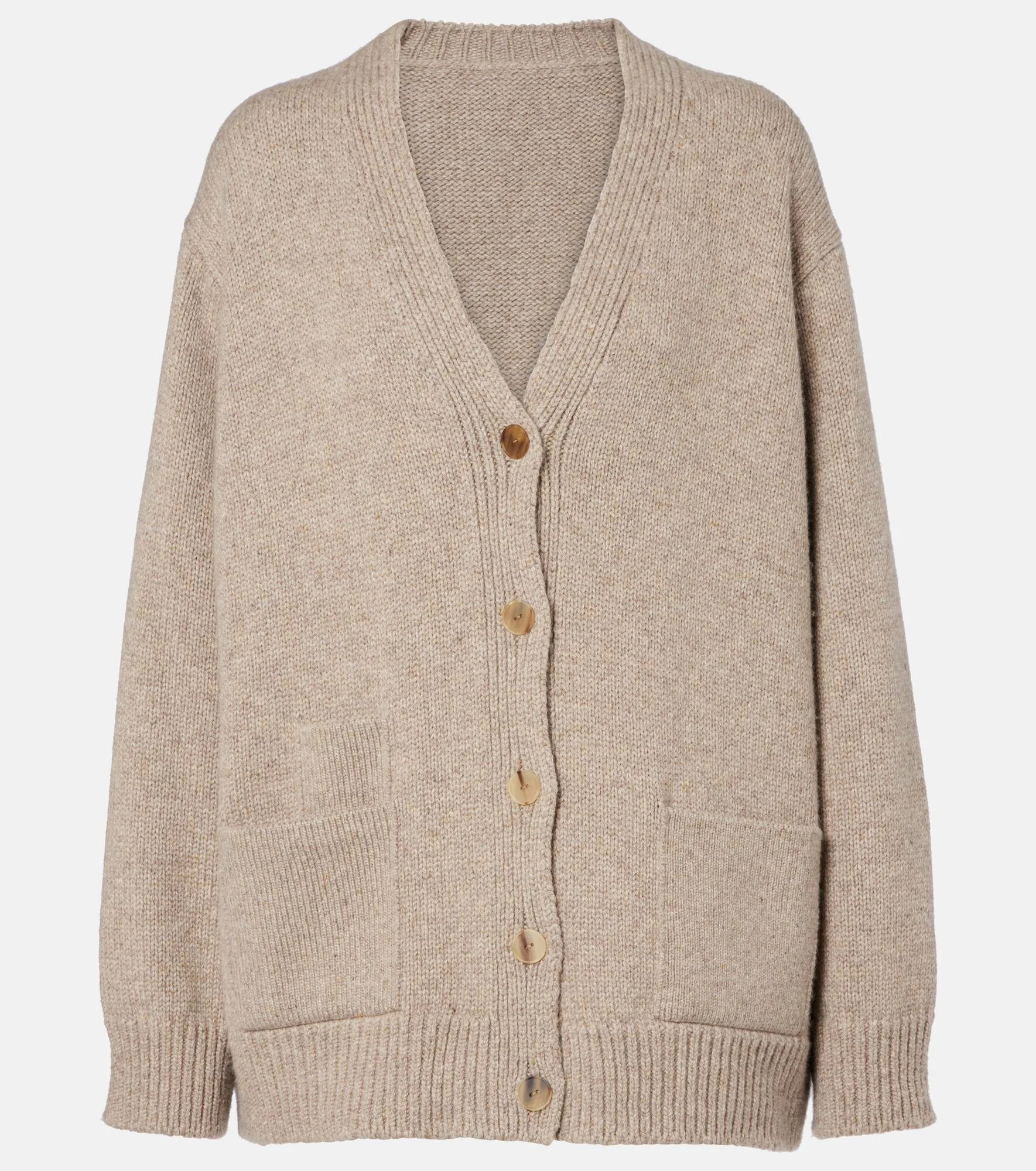 Refined, timeless fashion lies at the heart of The Row’s dedication to craftsmanship and quality. This Milou pure cashmere cardigan features a relaxed fit, a ribbed-knit pattern, and a deep V-neckline. Product Details - Material: 100% cashmere - Care instructions: dry clean - Made in Italy - Designer color name: Light Pebble - Item color: beige - Closure: buttoned front - Cuff: ribbed - Hem: ribbed - Item number: P01115406