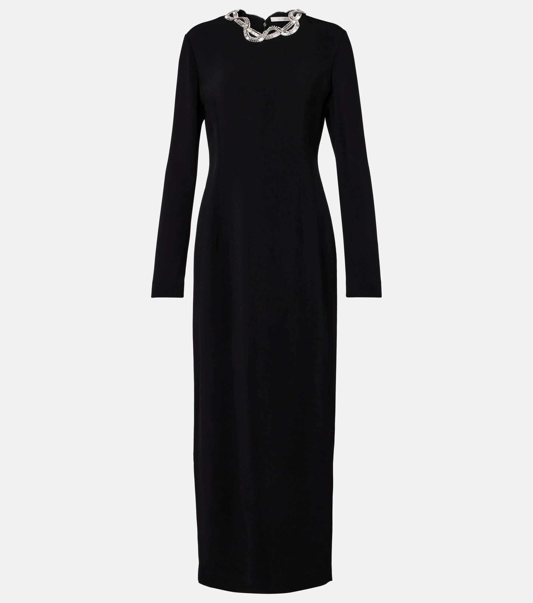 Crafted in stretch cady, the Mitsuko maxi dress from the Row features an ankle-length column silhouette. The design is complete with a hand-embellished asymmetric neckline and center back hem vent for a sleek finish. Product Details - Material: 97% viscose, 3% elastane - Care instructions: dry clean - Made in Italy - Designer color name: Black/Diamond - Item color: black, white - Embroidery: 60% glass, 40% brass - Lining: 100% silk - Item number: P01035324 Size & Fit - Fits large to size - we recommend trying two sizes smaller - Cinched waist - Non-stretchy fabric - slit length 43cm-17" - The model seen in the picture is 178cm-5'10" and wearing a size US 0