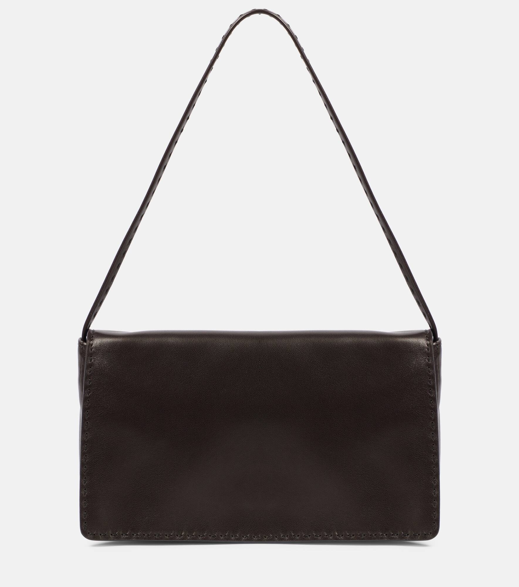 Product Details - Material: lamb leather - Lining: fabric - Made in Italy - Designer color name: DARK BROWN ANS - Closure: magnetic-tab fastening - Top handle - Internal details: internal slot pocket, internal zipped pocket - Includes: dust bag - Item number: P00999124 Size & Fit - Height 15cm-6" - Width 25cm-10" - Depth 4cm-1.5" - Length shoulder strap 57cm-22.5"