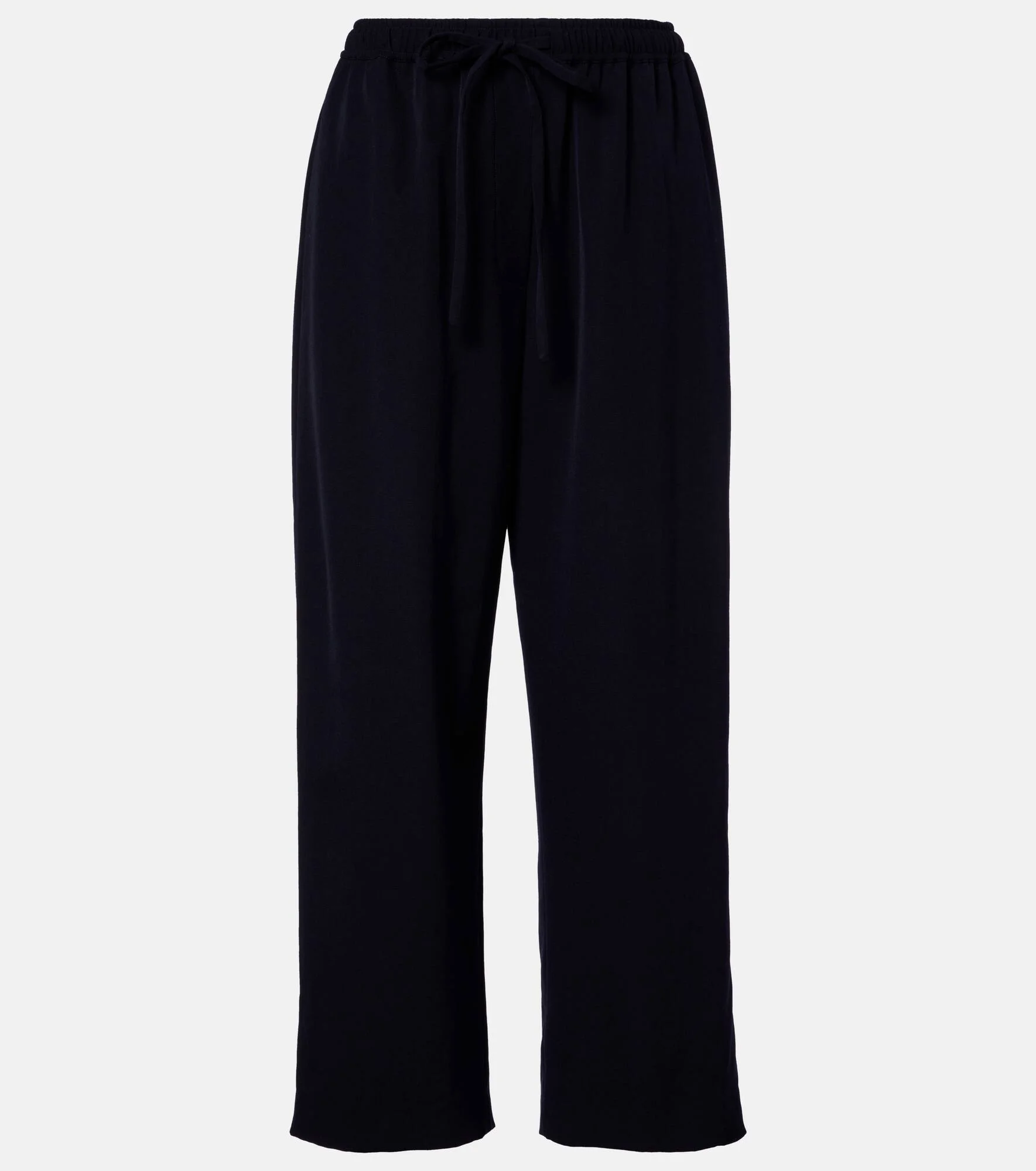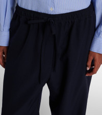 The Orieno pants are expertly Italian-crafted from pure wool gabardine. Refined tailoring is at the heart of The Row’s identity – the brand was named after Savile Row, London’s bespoke tailoring district. Product Details - Material: 100% wool - Care instructions: dry clean - Made in Italy - Designer color name: Dark Navy - Item color: blue - Lining: 100% silk - Elasticated drawstring waist - Pockets: side slit pockets, back pocket - Item number: P01115454 Size & Fit - True to size - Elasticated waist - Adjustable at the waist - Non-stretchy fabric - Wide-leg - Sits low on the hips - The model seen in the picture is 178cm-5'10" and wearing a size US 4