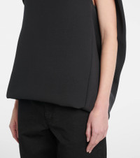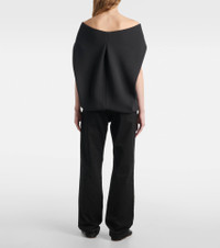 A deep affection for refined and timeless fashion influences The Row's dedication to craftsmanship and quality. The Pallenberg off-shoulder top embodies sculptural elegance with architectural draping at the back. Product Details - Material: 80% virgin wool, 20% polyester - Care instructions: do not wash - Made in Italy - Designer color name: Faded Black - Item color: black - Item number: P01035325 Size & Fit - True to size - Off-the-shoulder - Designed for a loose fit - Non-stretchy fabric - Falls below the hip - Height of model is 173cm-68" and wears a size US 4