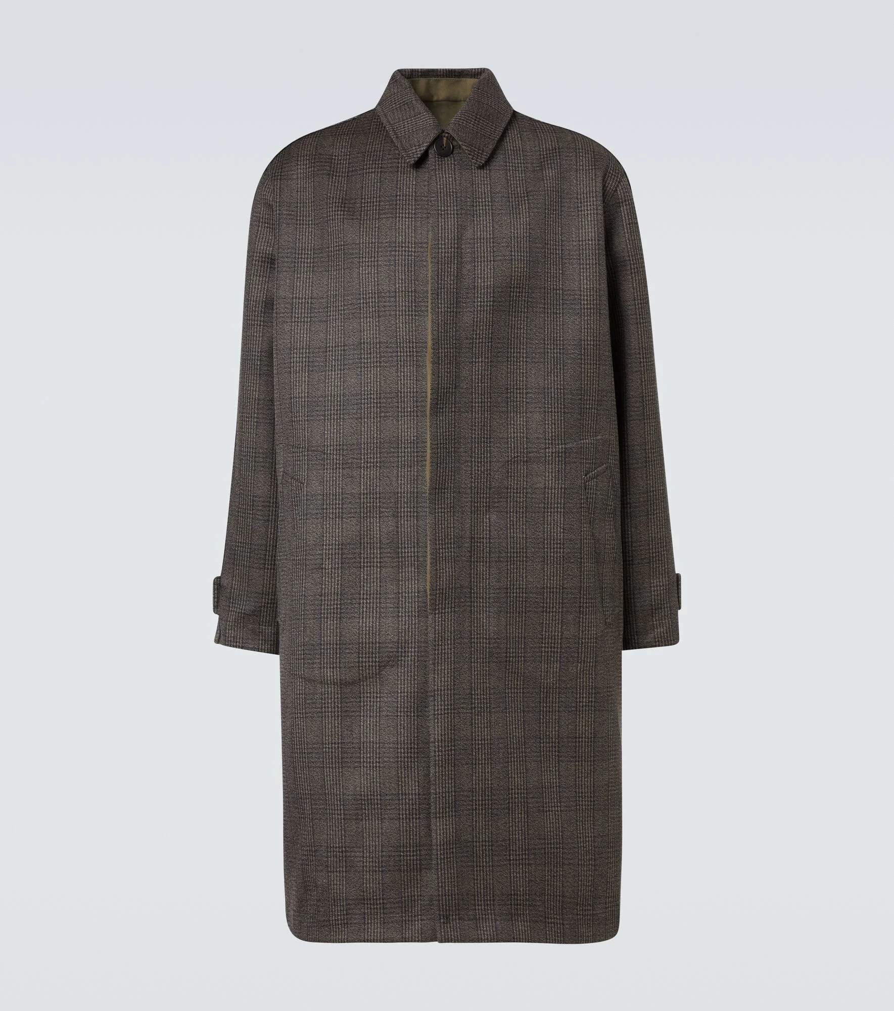 A deep affection for refined and timeless fashion influences The Row's dedication to craftsmanship and quality. The Palo coat features a subtle plaid pattern on wool and silk construction. Product Details - Material: 83% virgin wool, 17% silk - Care instructions: dry clean - Made in Italy - Designer color name: Black/Light Brown - Item color: black, brown - Material II: 100% silk - Collar: classic (Straight point) - Closure: concealed buttoned front - Pockets: welt pockets - Cuff: buttoned - Vent: single - Item number: P01085255 Size & Fit - True to size - Straight fit - Non-stretchy fabric - Height of model is 188cm-74" and wears a size UK 40