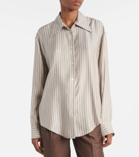 Product Details - Material: 100% silk - Care instructions: dry clean - Made in Italy - Designer color name: Beige/Brown - Closure: buttoned front - Item number: P00999844 Size & Fit - True to size - Dropped shoulders - Designed for a loose fit - Non-stretchy fabric - Falls below the hip - The model seen in the picture is 178cm-5'10" and wearing a size US 4
