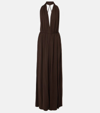 Cut from jersey crepe, the Pharao gown highlights The Row's masterful draping technique. Its floor-grazing silhouette includes an exaggerated V-neckline and a daringly elegant open back with intricate strap detailing. Product Details - Material: 100% viscose - Care instructions: dry clean - Made in Italy - Designer color name: Oak - Item number: P00999868 Size & Fit - Fits large to size - we recommend trying one size smaller - Low back - Cinched waist - Stretchy fabric - The model seen in the picture is 178cm-5'10" and wearing a size US 2
