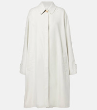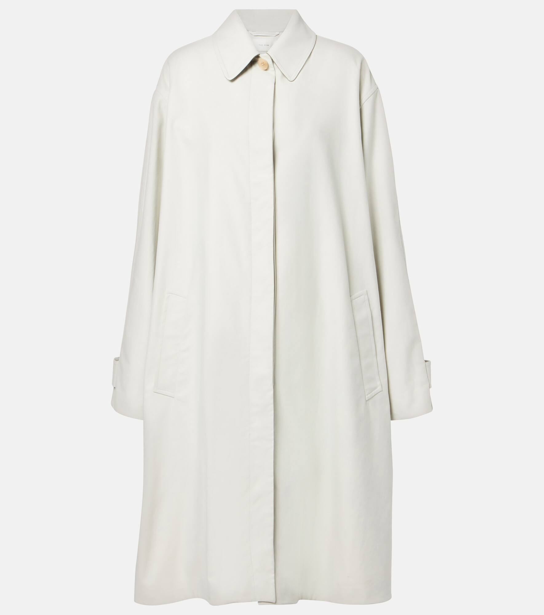The Row excels at designs like the Pluma coat, which combines exceptional craftsmanship with a minimal aesthetic. Made in Italy, the knee-length, lightweight style features a relaxed fit and spacious side pockets. Product Details - Material: 85% cotton, 15% cashmere - Care instructions: dry clean - Made in Italy - Designer color name: Snow - Item color: white - Material II: 100% cashmere - Lining: 100% cotton - Cuff: tab cuff - Pockets: slant pockets - Closure: concealed button placket - Vent: single - Relaxed fit - Item number: P01076741 Size & Fit - True to size - Dropped shoulders - Designed for a loose fit - Non-stretchy fabric - slit length 36,0cm-14" - The model seen in the picture is 178cm-5'10" and wearing a size US 4