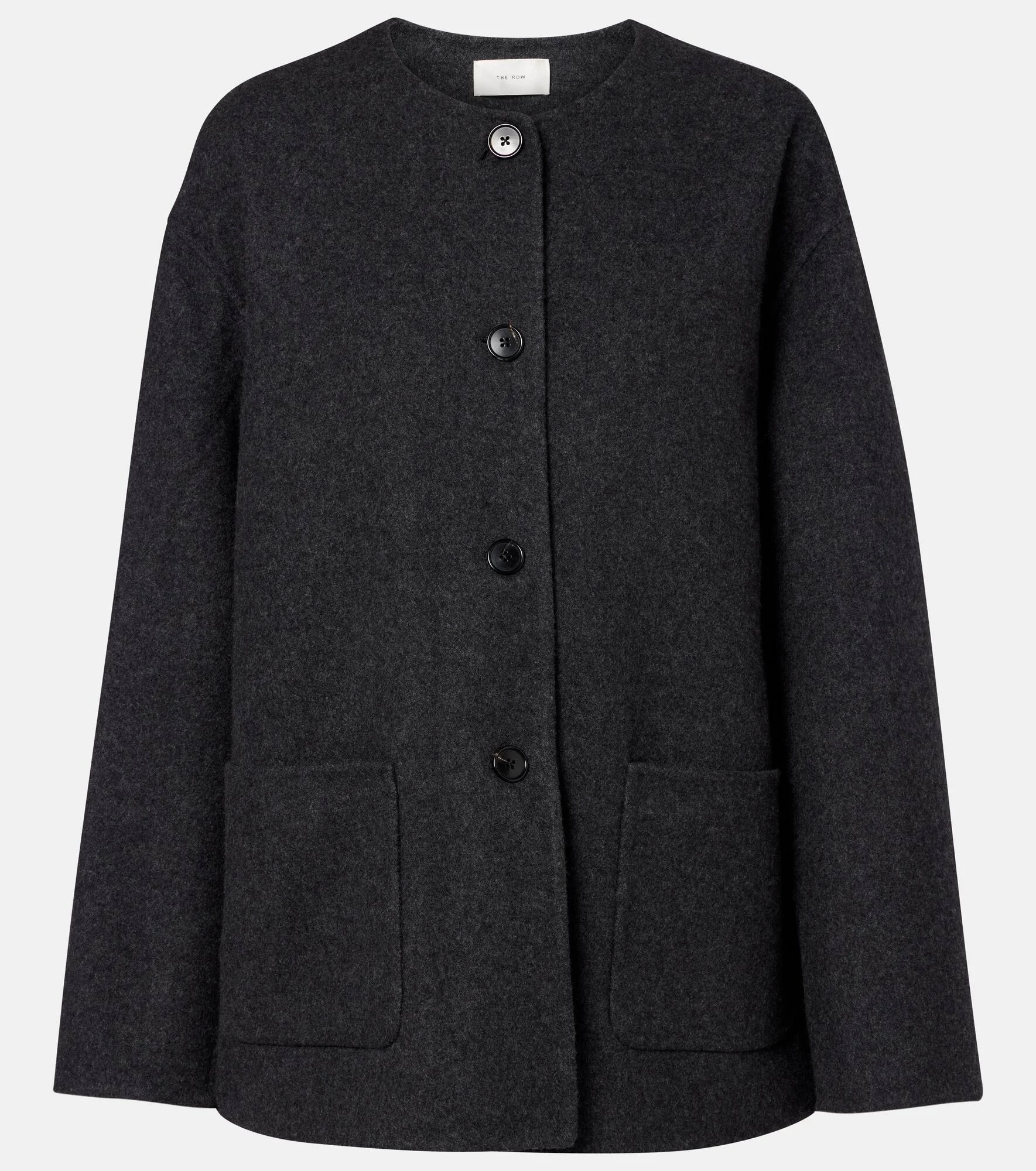 A deep affection for refined and timeless fashion influences The Row's dedication to craftsmanship and quality. The Quintus jacket is made in Italy and crafted from pure cashmere, featuring a collarless silhouette and two spacious patch pockets. Product Details - Material: 100% cashmere - Care instructions: dry clean - Made in Italy - Designer color name: Dark Charcoal - Item color: gray - Closure: buttoned front - Pockets: patch pockets - Item number: P01115280