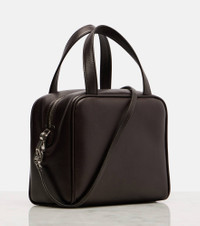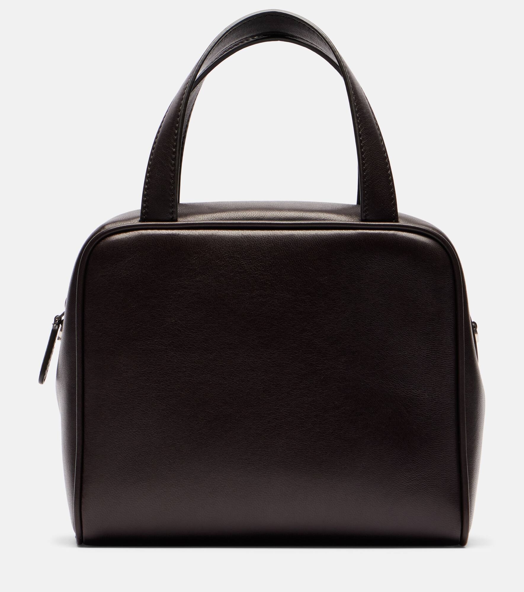 Crafted from supple leather, the Ray tote bag from The Row features a compact silhouette with top-handle carry. The design is complete with zipper closure and a long, adjustable shoulder strap for versatile wear. Product Details - Material: leather - Lining: leather - Made in Italy - Designer color name: Dark Aniline Ans - Item color: brown - Contains non-textile parts of animal origin - Closure: zipped top - Top handles, Detachable shoulder strap - Hardware color: silver - Item number: P01015792 Size & Fit - Height 15cm-6" - Width 18,5cm-7.5" - Max. depth 9cm-3.5" - Min. length of handles 26,5cm-10.5" - Max. length of handles 88cm-34.5"