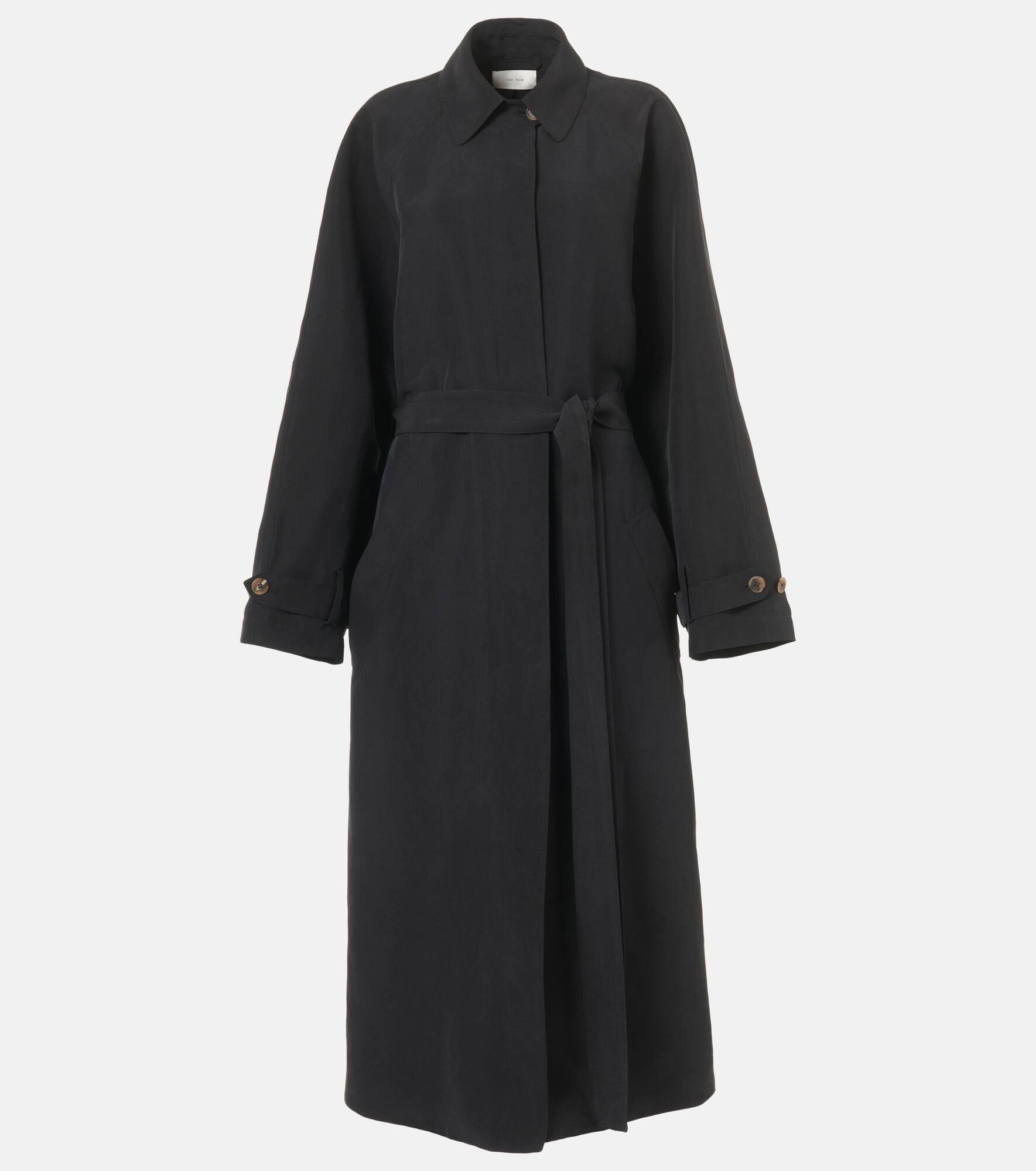 A deep affection for refined and timeless fashion influences The Row's dedication to craftsmanship and quality. The Ryo wrap coat is crafted from silk and is secured with concealed buttons and a matching belt. Product Details - Material: 100% silk - Care instructions: dry clean - Made in Italy - Designer color name: Black - Item color: black - Item number: P01035330 Size & Fit - True to size - Designed for an extremely oversized fit - Loose fit, comes with belt - Non-stretchy fabric - Height of model is 173cm-68" and wears a size US 4