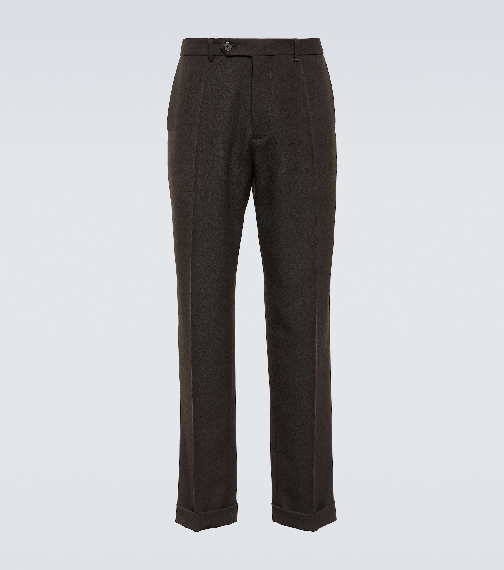 Refined tailoring is at the heart of The Row’s identity – the brand was named after Savile Row, London’s bespoke tailoring district. The brown Seth wool pants have straight legs, pressed creases, and turn-up cuffs. Product Details - Material: 100% wool - Care instructions: dry clean - Made in Japan - Lining: 100% silk - Closure: zipper fly, button and hook fastenings - Pockets: side slit pockets, back pockets - Belt loops - Contains non-textile parts of animal origin - Item number: P00835890 Size & Fit - True to size - Mid-weight material - Straight leg - The model in the picture is 185cm-6'1" and wearing a size 32