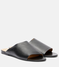 A deep affection for refined and timeless fashion influences The Row's dedication to craftsmanship and quality. The Signum slides are made in Italy purely from black leather. Product Details - Upper: calf leather - Lining: calf leather - Sole: leather insole and sole - Toe shape: round open toe - Made in Italy - Includes: shoe box, dust bag - Designer color name: Black - Item color: black - Item number: P01049339 Size & Fit - True to size - For narrow feet, we recommend trying a half size smaller - European sizes - 1,5cm-0.5" heel (size EU 38)