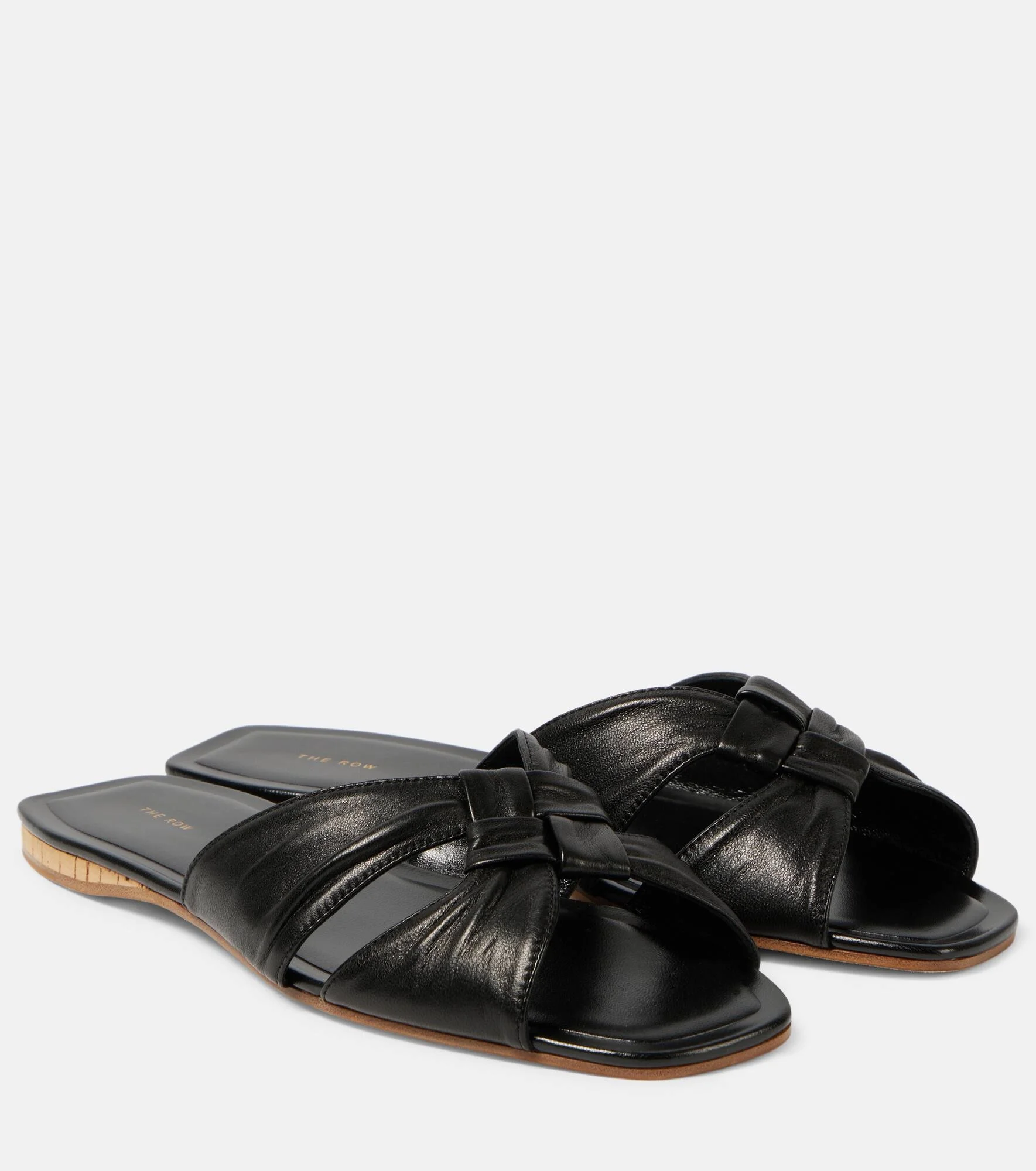 Product Details - Upper: lamb leather - Lining: leather - Sole: leather insole and sole - Toe shape: square open toe - Made in Italy - Includes: shoe box, dust bag - Designer color name: Black/Cork - Item number: P00902807